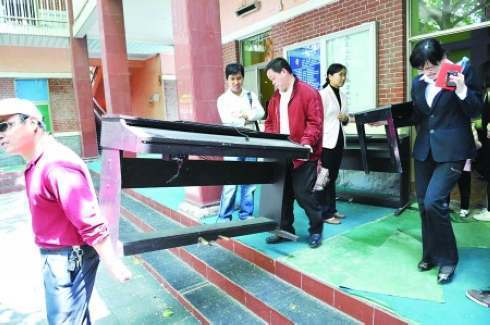 中午12點(diǎn)左右,部分家長開始把教室里的設(shè)施往外搬。幾位家長把數(shù)碼鋼琴房里的一架電子鋼琴搬出了教室!斑@個(gè)教室里原來有9架鋼琴,現(xiàn)在還剩7架,這一架是我占的!币晃50歲上下的女士對(duì)記者說,“我覺得復(fù)課是不大可能了,要求退錢又找不到領(lǐng)導(dǎo),只好搬點(diǎn)東西作抵押了!