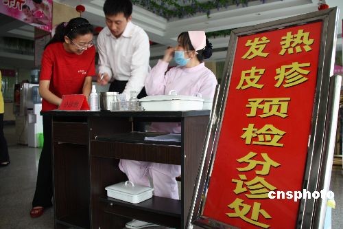 5月4日,山東聊城東昌府區(qū)婦幼保健院分診臺(tái)工作人員在對(duì)前來(lái)就診的患者進(jìn)行預(yù)檢分診。針對(duì)當(dāng)前甲型H1N1流感防控形勢(shì)的日益嚴(yán)峻,山東聊城市各醫(yī)療機(jī)構(gòu)按照《預(yù)診分診管理辦法》,設(shè)立發(fā)熱門(mén)診和預(yù)檢分診處,對(duì)不明原因肺炎和流感樣病例進(jìn)行及時(shí)監(jiān)測(cè)。中新社發(fā) 孔政 攝