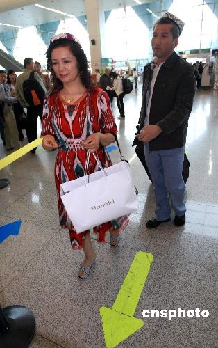 5月9日,新疆172名旅客從烏魯木齊地窩堡國際機(jī)場(chǎng)乘坐飛機(jī)前往上海,經(jīng)由上海乘坐游輪前往寶島臺(tái)灣旅游觀光。該旅行團(tuán)將游覽臺(tái)北故宮、基隆夜市、太魯閣、日月潭、中臺(tái)禪寺等臺(tái)灣著名旅游景點(diǎn)。團(tuán)中數(shù)名維吾爾族游客表示,希望借此機(jī)會(huì)向臺(tái)灣同胞介紹美麗富饒的新疆,加深兩地少數(shù)民族文化的交流。中新社發(fā) 劉新 攝