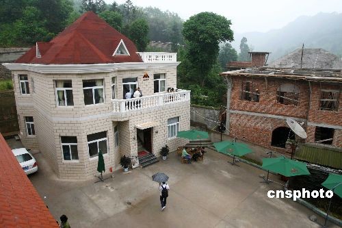 5月12日四川大地震將滿周年,都江堰大觀鎮(zhèn)茶坪村通過“聯(lián)建”房方式,已使倒塌的房屋變成嶄新的小別墅。該村緊鄰世界文化遺產青城山,全村共147戶,去年“5.12”大地震造成全村房屋受到不同程度的損壞,茶坪村在災后重建中運用統(tǒng)籌城鄉(xiāng)的思路和方式,結合農村產權制度改革成果,利用旅游和基礎設施優(yōu)勢,引入社會資金采取“聯(lián)建”方式重建,突出后續(xù)產業(yè)發(fā)展,布局未來鄉(xiāng)村連鎖酒店業(yè),構筑村民可持續(xù)增收平臺,推進了災后重建與產業(yè)發(fā)展的統(tǒng)籌布局。中新社發(fā) 富田 攝