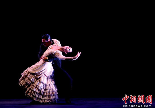 5月13日晚,作為西班牙文化標(biāo)志的弗拉門戈舞亮相上海世博會(huì)。為了讓中國(guó)游客進(jìn)一步了解西班牙文化,西班牙館專門邀請(qǐng)西班牙最高水準(zhǔn)的國(guó)家芭蕾舞團(tuán)來上海獻(xiàn)演弗拉門戈舞。舞蹈團(tuán)本次帶來的節(jié)目極具原創(chuàng)性,之前從未在中國(guó)上演過。中新社記者 杜洋 攝