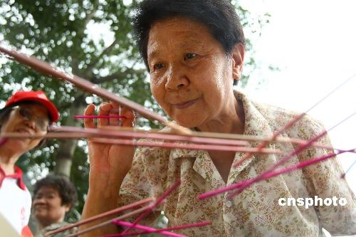 7月11日,在北京安貞社區(qū),一場名為“懷憶童年”的趣味運(yùn)動會在小區(qū)內(nèi)舉行,滾鐵環(huán)、耍拐、彈球兒、挑棍兒、抽漢奸、打包兒、拍三角等十幾個項(xiàng)目吸引了社區(qū)百余位老年人的熱捧,報(bào)名參賽運(yùn)動員的平均年齡達(dá)到了70歲。據(jù)社區(qū)居委會工作人員介紹,懷舊運(yùn)動會能讓老年人更好的強(qiáng)身健體,更能追憶美好童年。中新社發(fā) 富田 攝