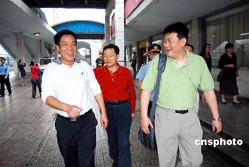 2009年5月25日,中國(guó)女排國(guó)家隊(duì)結(jié)束為期50天的集訓(xùn)離開(kāi)湖南郴州,開(kāi)始新的征程。當(dāng)天,新一屆中國(guó)女排在主教練蔡斌率領(lǐng)下乘坐K82次列車奔赴河南漯河市,參加即將于5月29日至31日舉行的2009中國(guó)國(guó)際女排精英賽。這是新一屆中國(guó)女排國(guó)家隊(duì)的首度亮相,屆時(shí)將有中國(guó)、古巴、多米尼加、土耳其四國(guó)的女排精英獻(xiàn)上精彩賽事。 中新社發(fā) 賀茂峰 攝