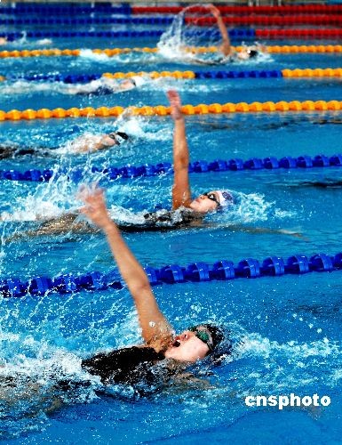 6月25日,為期五天的第十一屆全運會游泳預(yù)選賽暨2009年全國青年游泳錦標(biāo)賽落下帷幕。本次比賽為第十一屆全運會游泳決賽的資格賽,分別在天津和大連兩個賽區(qū)舉行,達(dá)標(biāo)運動員取得了將于今年十月份舉行的全運會游泳決賽的資格。天津賽區(qū)有江蘇、浙江、安徽、福建、廣東等14支代表隊的252名選手報名參賽;大連賽區(qū)有北京、遼寧、上海、貴州、解放軍等12支代表隊的314名選手報名參賽。中新社發(fā) 劉德斌 攝
