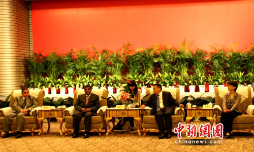 6月25日晚,中共中央對外聯(lián)絡部副部長李進軍(右二)、中共揚州市委書記王燕文(右一)在揚州迎賓館會見參加26日由中共中央對外聯(lián)絡部與中共揚州市委、揚州市人民政府共同主辦的中國與海灣阿拉伯國家石化產業(yè)合作論壇的海合會六成員國阿拉伯聯(lián)合酋長國、阿曼、巴林、卡塔爾、科威特和沙特阿拉伯的駐華大使或臨時代辦,以及全球最大的石油公司沙特阿美公司、沙特基礎工業(yè)公司、沙特扎米爾集團公司、阿聯(lián)酋國家石油公司、阿聯(lián)酋博祿石化公司、卡塔爾天然氣公司等多家海灣阿拉伯國家石化企業(yè)高層領導。圖左二為阿曼蘇丹國駐華大使阿卜杜拉·薩阿迪,左一為阿聯(lián)酋駐華大使歐麥爾·白伊塔爾。