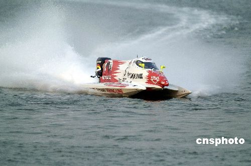 10月20日,2007F1摩托艇世錦賽中國深圳大獎賽在深圳南山后海開賽。目前排名2007賽季積分榜首位的薩米·瑟里奧繼續(xù)表現(xiàn)神勇,兩輪排位賽結束后,以單圈36.66秒的最好成績位列第一;高迪奧·卡佩里尼緊隨其后,以36.81秒的成績屈居第二。按照國際慣例,當天下午進行的是排位賽和桿位賽,比賽吸引了數(shù)萬觀眾到場觀看。中新社發(fā) 吳峻 攝