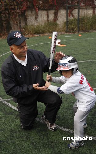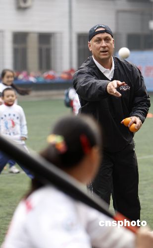 10月30日,入選棒球名人堂的前美國(guó)職業(yè)棒球運(yùn)動(dòng)員卡爾·瑞普金在北京西單小學(xué)教小學(xué)生打棒球。這是他以美國(guó)國(guó)務(wù)院派遣的美國(guó)公共外交特使的身份進(jìn)行的首次出訪。瑞普金將訪問北京、上海和廣州,在這三個(gè)城市中,瑞普金將與青少年進(jìn)行接觸,相互進(jìn)行文化交流,同時(shí)為更多的新手講解棒球運(yùn)動(dòng)?·瑞普金是棒球運(yùn)動(dòng)有史以來空前的鐵人紀(jì)錄保持者,也是美國(guó)棒球名人堂成員之一。他是棒球史上僅有的取得400次本壘打和擊中3000次的八位知名球員之一。2007年7月29日,他以史上最高得票數(shù)入選美國(guó)棒球名人堂。 中新社發(fā) 杜洋 攝