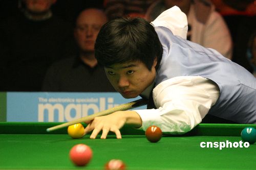當(dāng)?shù)貢r(shí)間12月12日晚,中國(guó)斯諾克選手丁俊暉經(jīng)過(guò)十六局苦戰(zhàn),最終憾負(fù)目前世界排名第一的肖恩·墨菲,無(wú)緣英國(guó)錦標(biāo)賽四強(qiáng)。比賽非常激烈,兩人比分緊咬。中新社發(fā) 李鵬 攝