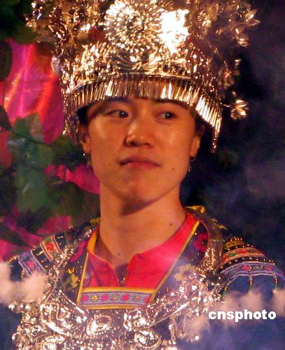 12月24日晚,2007年國(guó)際女子乒乓球?qū)官愒趶V西柳州拉開帷幕。賽前所有運(yùn)動(dòng)員都身穿當(dāng)?shù)氐拿褡宸b亮相。中新社發(fā) 周瀟男 攝