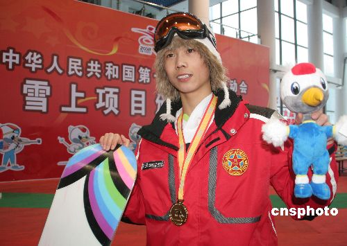 圖:全國冬運會單板滑雪曾小燁勇奪金牌