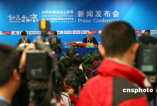 1月29日,在“水立方”召開的中國游泳公開賽新聞發(fā)布會,吸引各國媒體爭相報(bào)道。中國游泳公開賽是在國家游泳中心——水立方舉行的首場比賽。中新社發(fā) 富田 攝