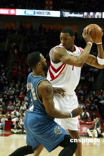 當(dāng)?shù)貢r(shí)間2月26日晚,失去姚明的休斯敦火箭隊(duì)“化悲痛為力量”,坐鎮(zhèn)主場(chǎng)以94-69橫掃奇才拿下13連勝。麥迪在姚明缺陣的情況下帶領(lǐng)全隊(duì)全面開(kāi)花。中新社發(fā) 楊晉升 攝