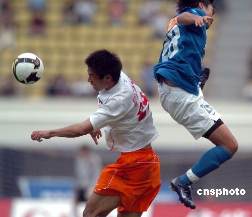 2008年4月6日下午,新賽季中超進入第二輪角逐。被譽為廣東“德比”的深圳上清飲隊在主場深圳體育場迎戰(zhàn)本賽季的升班馬廣藥中一隊。經過90分鐘鏖戰(zhàn)雙方以1比1握手言和。中新社發(fā) 吳峻 攝