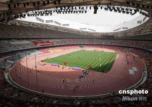 5月22日,“好運(yùn)北京”2008中國(guó)田徑公開賽在國(guó)家體育場(chǎng)“鳥巢”拉開帷幕。這是中國(guó)在全國(guó)哀悼日結(jié)束后舉辦的首項(xiàng)重大賽事,也是鳥巢首次全面開放進(jìn)行奧運(yùn)場(chǎng)館測(cè)試賽。中新社發(fā) 富田 攝