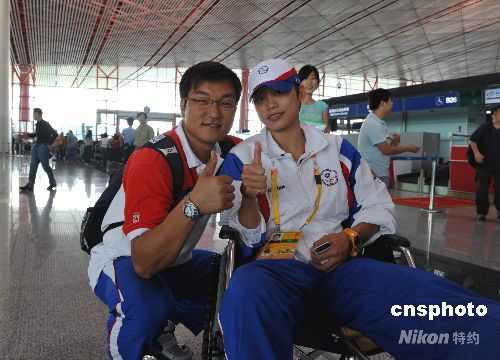 隨著第29屆奧運會落下帷幕,從8月25日起,首都機場迎來各國運動員、工作人員和游客集中離京的高峰日。當日,離京的奧運航班有260架次,人員超過1萬人次。預(yù)計隨后兩天,將有約5000名奧運大家庭成員離京。圖為25日首都機場T3航站樓,在比賽中受傷的中華臺北代表團跆拳道選手蘇麗文與隊友即將離京。中新社發(fā) 李學仕 攝