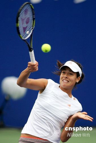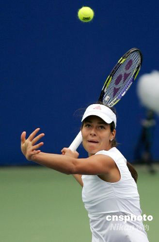 9月25日,總獎金額為60萬美元的中國網(wǎng)球公開賽繼續(xù)第4日角逐。在女單第2輪爭奪中,2號種子塞爾維亞美少女伊萬諾維奇走出低谷,戰(zhàn)勝法國公主科內(nèi)特,挺進(jìn)女單8強。伊萬諾維奇女單1/4決賽中的對手將是中國金花鄭潔。中新社發(fā) 富田 攝