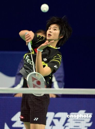 11月20日,2008年中國(guó)羽毛球公開(kāi)賽繼續(xù)在上海進(jìn)行,在女單八分之一比賽中,中國(guó)小將王琳對(duì)陣德國(guó)的徐懷雯,結(jié)果王琳以21-17,21-15連勝兩局晉級(jí)女單八強(qiáng)。此前,李永波曾表示,王琳將是中國(guó)羽毛球女單接班人。中新社發(fā) 湯彥俊 攝