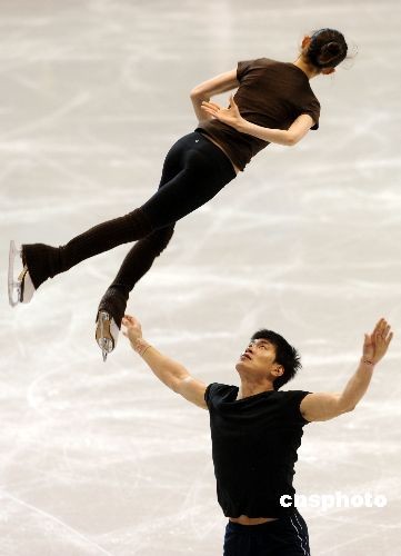 當?shù)貢r間三月二十三日下午,中國雙人滑選手張丹/張昊在洛杉磯進行賽前訓練。二00九年世界花樣滑冰錦標賽二十四日將在洛杉磯開幕。中國名將、都靈冬奧會亞軍張丹/張昊和世錦賽冠軍龐清/佟健將向雙人滑金牌發(fā)起沖擊。中新社發(fā) 張煒 攝