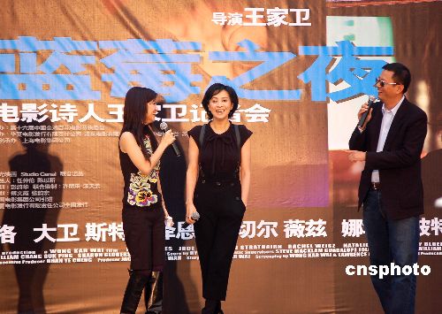 10月25日,第十六屆中國金雞白花電影節(jié)系列活動之“藍莓之夜——電影詩人王家衛(wèi)導演記者會”在美麗的金雞湖畔舉行。香港著名導演、編劇及監(jiān)制王家衛(wèi)攜首部外語片《藍莓之夜》蒞臨現(xiàn)場,作為第十六屆金雞百花電影節(jié)娛樂形象大使的劉嘉玲也來為王家衛(wèi)導演助陣,為本屆電影節(jié)增添璀璨星光。中新社發(fā) 邱勇 攝