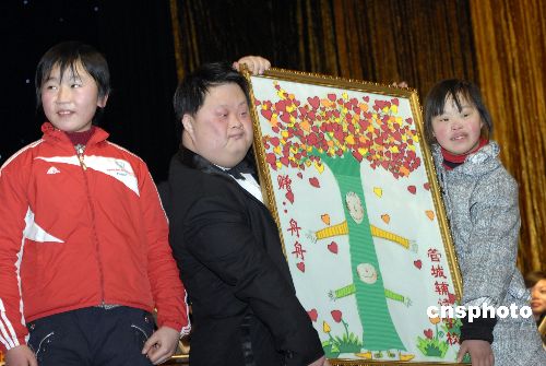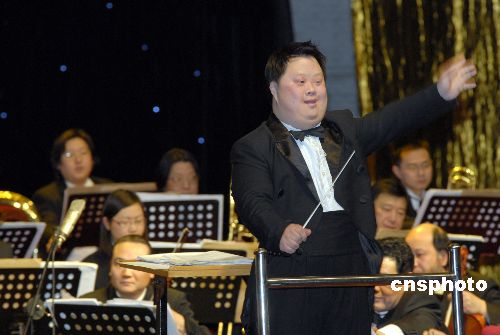 1月30日下午,“心靈之舟 情暖中原——2008安利新春慈善音樂(lè)會(huì)”在河南省人民大會(huì)堂上演。被音樂(lè)大師斯特恩譽(yù)為“創(chuàng)造藝術(shù)的指揮家”的智障青年舟舟,用手中的“魔棒”,感動(dòng)了在場(chǎng)觀眾。中新社發(fā) 向明超 攝
