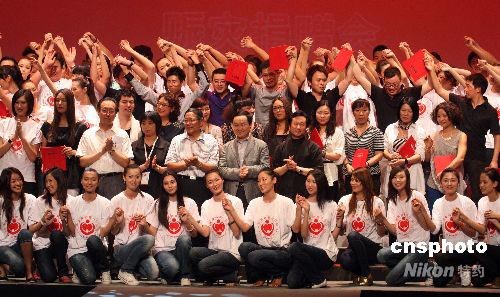 6月19日晚,由中國服裝設(shè)計師協(xié)會在北京舉辦的“人文奧運(yùn)”時尚成衣發(fā)布會暨“愛心·時尚”賑災(zāi)捐贈會上,“中國模特愛心行動”再掀一個高潮,中國內(nèi)地名模代表們通過現(xiàn)場宣誓,吹響“中國模特愛心行動”全面啟動的號角,“中國模特愛心行動”將在今后定期或不定期的舉辦各種形式的宣傳活動籌集善款,并全部用于資助災(zāi)區(qū)及其它貧困地區(qū)的兒童教育事業(yè)。中國扶貧基金會收到全額款項后,將根據(jù)中國服裝設(shè)計師協(xié)會職業(yè)時裝模特委員會的意愿,點(diǎn)對點(diǎn)落實為災(zāi)區(qū)小學(xué)建立圖書室、電腦房等。圖為中國時裝設(shè)計師、模特以及中國服裝業(yè)內(nèi)人士一起參加愛心行動啟動。中新社發(fā) 錢興強(qiáng) 攝