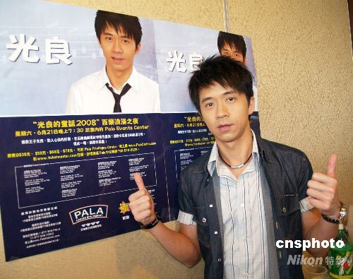 6月19日,馬來西亞“情歌王子”光良飛抵美國洛杉磯,舉辦《光良的童話2008百樂浪漫之夜》,讓洛杉磯廣大華人歌迷有機(jī)會(huì)與光良近距離接觸,受到熱烈歡迎。中新社發(fā) 盧威 攝