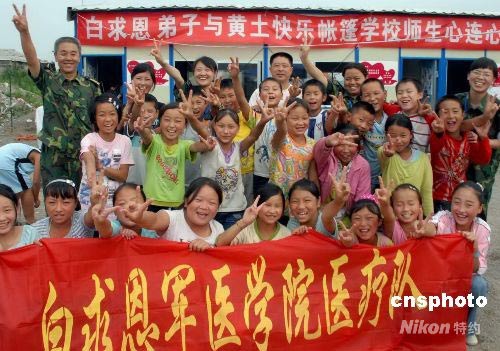 解放軍石家莊白求恩軍醫(yī)學(xué)院派出的心理支援隊(duì),近日來到四川省安縣黃土鎮(zhèn)“快樂帳篷學(xué)!,向孩子履行心理支援義務(wù),收到良好效果。中新社發(fā) 尹威華 攝