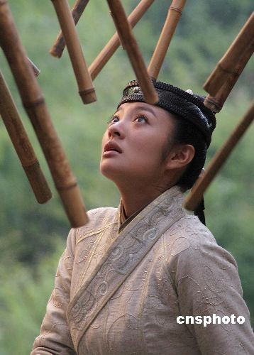 二月二十三日,臺灣女演員安以軒在福建武夷山拍攝《倚天屠龍記》中的武打鏡頭。由張紀中執(zhí)導的該片正在福建武夷山熱拍打戲,內(nèi)地演員鄧超與臺灣女演員安以軒分別飾演劇中男女主角張無忌與趙敏。中新社發(fā) 周文杰 攝