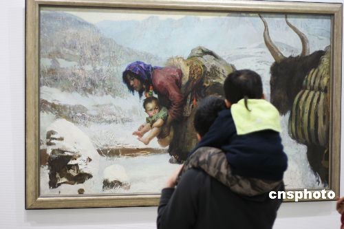 4月5日,武漢市民在湖北省藝術(shù)館欣賞中國(guó)美術(shù)館館藏精品!伴L(zhǎng)風(fēng)萬里西部情——中國(guó)美術(shù)館館藏精品展”正在湖北省藝術(shù)館展出,114件國(guó)家級(jí)美術(shù)藏品首次亮相武漢。該展由湖北省藝術(shù)館與中國(guó)美術(shù)館共同主辦,是文化部支持西部的重要文化活動(dòng)之一。該展此前曾在陜西、上海、廈門展出,武漢的展覽到4月26日結(jié)束。中新社發(fā) 孫新明 攝