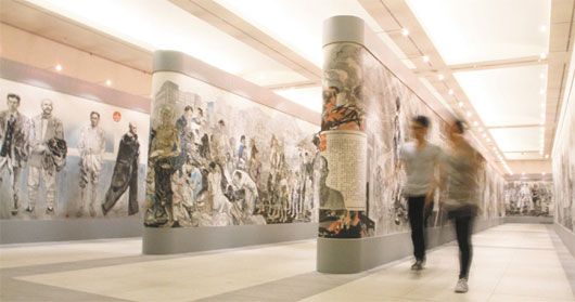 據(jù)報道,這幅名為《浩氣長流》的巨畫,由六個部分組成,分成《故國》、《青天碧海》、《山河歲月》、《血肉長城》、《精神堡壘》、《信義和平》和《祈禱》,創(chuàng)下史上最長畫作的紀(jì)錄。