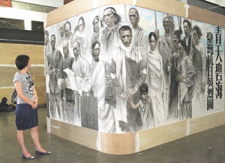 據(jù)報道,這幅抗日巨畫,由五十多名大陸畫家、歷史學(xué)家花了五年半時間集體創(chuàng)作八年抗戰(zhàn)的故事,按真人比例實錄一千多名歷史人物,期間畫家歐治渝甚至用眼過度差點失明。巨畫按真人比例實錄一千多名歷史人物,畫卷高二米,總長逾八百米,相當(dāng)于小學(xué)操場繞四圈,展場橫跨臺北中山紀(jì)念館內(nèi)外,堪稱“史上最高難度”。