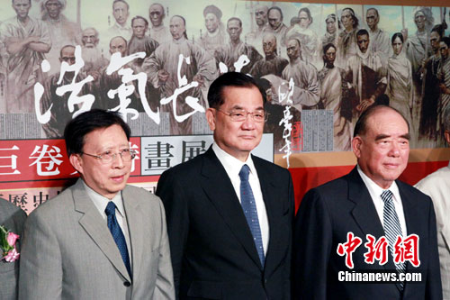 劉兆玄說,大陸畫家們用藝術(shù)來還原歷史,用畫作凸顯史詩,彌足珍貴。畫作能跨越海峽來臺展出更是壯舉。他說,兩岸分隔幾十年,2005年連戰(zhàn)與中共中央總書記胡錦濤會面,兩岸走向和平的道路,也是今天這項(xiàng)壯舉能夠順利舉行的時代意義。