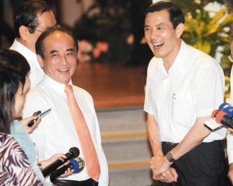 中新網(wǎng)7月15日電 據(jù)臺灣《聯(lián)合報》報道,臺“立法院”臨時會結束,“立法院長”王金平14日晚宴請馬英九,替他補過60歲生日。席間馬英九與“行政院長”吳敦義贊揚王金平領導“立法院”成功,通過各項重大法案,“在關鍵時刻發(fā)揮了關鍵影響力。”馬、王、吳三人還在臺上高唱“你是我的兄弟”,氣氛熱絡。