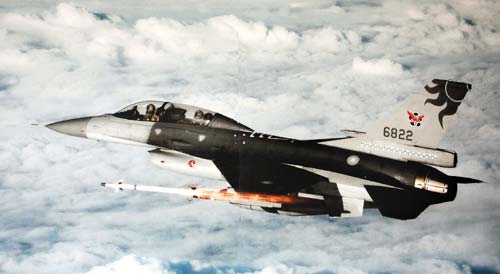 中新網(wǎng)8月5日電 據(jù)臺(tái)灣《聯(lián)合報(bào)》報(bào)道,臺(tái)灣空軍花蓮基地兩架F16戰(zhàn)機(jī)日前演習(xí)射擊魚(yú)叉飛彈。