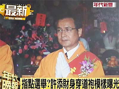 中新網(wǎng)8月6日電 據(jù)臺(tái)灣“今日新聞網(wǎng)”報(bào)道,民進(jìn)黨高雄縣長(zhǎng)楊秋興宣布參選大高雄市長(zhǎng)之后,同黨籍臺(tái)南市長(zhǎng)許添財(cái)?shù)南乱徊揭趺醋鰝涫芡饨珀P(guān)注,有媒體取得許添財(cái)前往濟(jì)公廟參拜的照片,直擊許添財(cái)身穿濟(jì)公道袍參加法會(huì)的虔誠(chéng)模樣。外傳廟中的濟(jì)公師父還曾經(jīng)給許添財(cái)指點(diǎn)迷津,建議他8月8日當(dāng)天宣布參選大臺(tái)南。