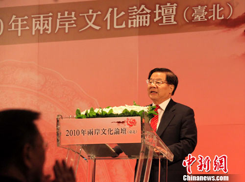 中華文化聯(lián)誼會與沈春池文教基金會合作舉辦的“把握契機 開創(chuàng)新局——2010年兩岸文化論壇”6日上午在臺北舉行。中新社記者 路梅 攝