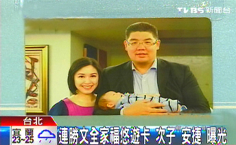中新網(wǎng)9月25日電 據(jù)臺灣TVBS電視臺報(bào)道,連戰(zhàn)長子連勝文和兒媳蔡依珊為保護(hù)孩子,堅(jiān)持不讓連定捷、連安捷兩個(gè)孩子輕易曝光,不過最近上千名國民黨代表,都收到一份別致的小禮物--蔡依珊、連勝文抱著連安捷一起拍合照制作成上千張悠游卡,連安捷可愛的的模樣也首度曝光。