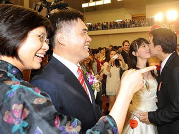 中新網(wǎng)10月11日電 據(jù)臺灣“今日新聞網(wǎng)”報道,臺北市政府10日下午舉行“花現(xiàn)臺北2010聯(lián)合婚禮”,臺北市長郝龍斌與夫人高閬仙現(xiàn)身為140對新人證婚,并祝福新人“幸福久久、十全十美、雙雙對對、萬年富貴”。