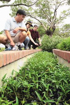 此外,張清華說,新生園區(qū)共超過20多種水生植物,除空心菜、茭白筍,另有水芋頭、野姜花、蘆葦、睡蓮,還有臺灣珍稀水生植物穗花棋盤腳等?招牟撕ㄅ琛6個月;钇,五盆共500元。