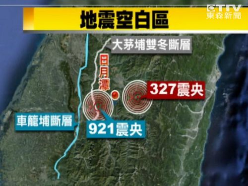 327地震、602地震兩次地震震中都位于921地震車籠埔斷層?xùn)|邊,這塊區(qū)域過(guò)去很少有地震紀(jì)錄,被稱為“日月潭地震空白區(qū)”,從過(guò)去的地震分布圖分析,日月潭東邊這區(qū)塊是幾乎是空白一片。臺(tái)灣“中央大學(xué)”地球科學(xué)院長(zhǎng)王干盈在327地震后曾表示,“中央山脈很硬,卡住,所以921地震,你可以看到這個(gè)地方卡住,所以它才沖到這邊來(lái)!