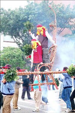 中新網2月15日電 昨天是情人節(jié),伍重瀚、蔡悅晨這對臺灣情侶選擇站上情人轎扮演寒單爺(臺東地區(qū)漢人的民間信仰中相當獨特的一支)接受炮轟,成為史上首對情侶檔寒單爺。