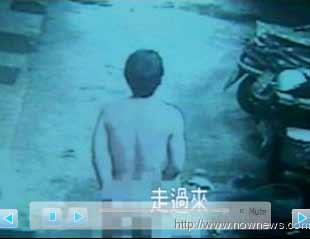 據(jù)臺灣東森新聞報(bào)道,監(jiān)視錄像帶中左上角這名男子全身光溜溜,從小吃店跑到大街上,左手遮著重要部位,右手往后遮屁股,見到有放學(xué)的學(xué)生經(jīng)過還會害羞的跑到車子后方躲起來,光天化日之下在大街上上演裸奔戲碼,他不是和朋友玩游戲玩輸被懲罰,而是因?yàn)闆]錢付酒錢。