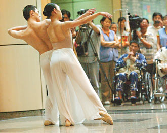 云門舞集成立已經(jīng)三十五周年,在全臺(tái)十九家醫(yī)院推出“醫(yī)院里的春天”巡演,把舞臺(tái)搬到醫(yī)院。臺(tái)大醫(yī)院昨天過(guò)113周年生日,云門舞者帶來(lái)“水月”的精華片段,沒(méi)有另外搭舞臺(tái),沒(méi)有燈光,在樸實(shí)的醫(yī)院大廳上演最真實(shí)的感動(dòng),駐足的觀眾把舞者團(tuán)團(tuán)圍住,還有病人坐著輪椅觀賞。