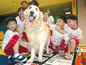 據臺灣媒體報道,“小胖”是一只3歲的黃金獵犬,初到幼兒園“兼課”,隨即贏得小朋友的喜愛。幼兒的狗“老師”是該幼兒園園長所催生。最近,她首創(chuàng)狗課程,雖然課程安排只有半小時,但她為除去家長的疑慮,特別與狗學校接觸,遴選具穩(wěn)定、服從性高的“小胖”到!凹嬲n”。