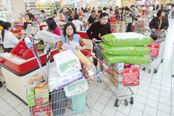 量販業(yè)者形容昨天是“最像假日的上班日”,尤其是夜間推出九折促銷(xiāo),吸引不少民眾犧牲睡覺(jué)時(shí)間來(lái)采買(mǎi),估計(jì)有二成來(lái)客選在凌晨消費(fèi)。家樂(lè)福夜間購(gòu)物滿(mǎn)2000元,再送200元折價(jià)券,各店從凌晨起收銀線(xiàn)即大排長(zhǎng)龍,汐止店甚至需排隊(duì)一個(gè)小時(shí)才能順利結(jié)帳。