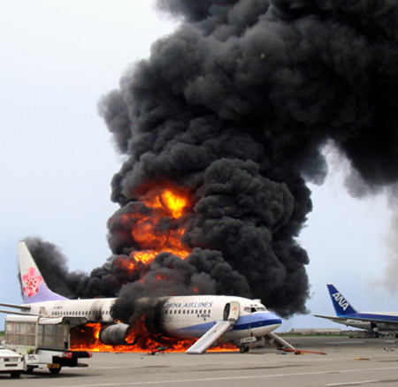 華航在日本琉球那霸機(jī)場發(fā)生火燒機(jī)意外!華航緊急疏散157個(gè)旅客,8個(gè)機(jī)組員也平安脫逃。圖為蔡湘雪旅客逃出時(shí)所拍的現(xiàn)場華航飛機(jī)爆炸畫面。記者周文郁/翻攝
