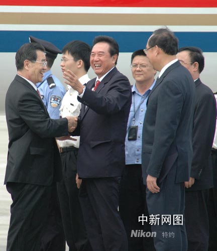 國務院臺辦主任陳云林、海南省常務副省長方曉宇等今天到機場迎接蕭萬長。