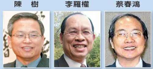劉兆玄昨天宣布的“內(nèi)閣”名單包括:“國防部長”陳肇敏,“財政部長”李述德,“教育部長”鄭瑞城,“陸委會主委”賴幸媛,“國科會主委”李羅權(quán),“行政院政務(wù)委員”張進(jìn)福、曾志朗,“客委會主委” 黃玉振,“人事行政局長”陳清秀,“新聞局長”史亞平,臺北“故宮博物院院長”周功鑫,“金管會主委”陳樹,“退輔會主委”高華柱,“原能會主委”蔡春鴻,“研考會主委”江宜樺,“文建會主委”黃碧端,“工程會主委”范良銹,“體委會主委”戴遐齡。