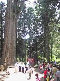 大陸客走訪阿里山神木群,見(jiàn)識(shí)神木的雄偉,紛拍照留念。