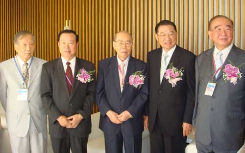 海基會董事長江丙坤(右二)與海協(xié)會副會長王在希(左二)七日出席第十三屆中國現(xiàn)代化學(xué)術(shù)研討會。中為“促進中國現(xiàn)代化學(xué)術(shù)基金會”董事長梅可望。 (“中央社”圖)